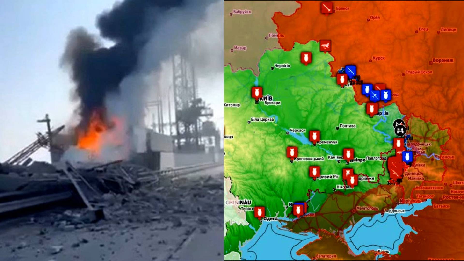 Карта боевых действий. Удар по Киевской ГЭС. Бои в Новогродовке