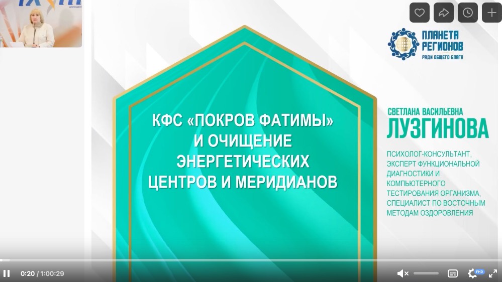 Лузгинова С.В. «КФС «Покров Фатимы» и очищение энергетических центров и меридианов. Ч.3» 19.09.24