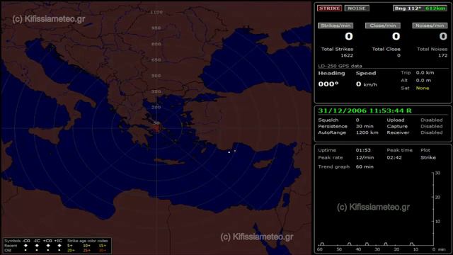 Κυ 31/12/2006 - Detector (LD-250) 24h History. Visit our: http://www.kifissiameteo.gr - Weather Lighting & Storm Detector Station, located at Kifissia, Athens - GREECE. •• Video produced from http://www.kifissiameteo.gr Lighting & Storm Detector Station history current date auto saved data (.nex file). All rights for this video, included music, sounds, parts of the video or even images created from this, belongs to http://www.Kifissiameteo.gr owners and can't be used without proper contact for user authorization.