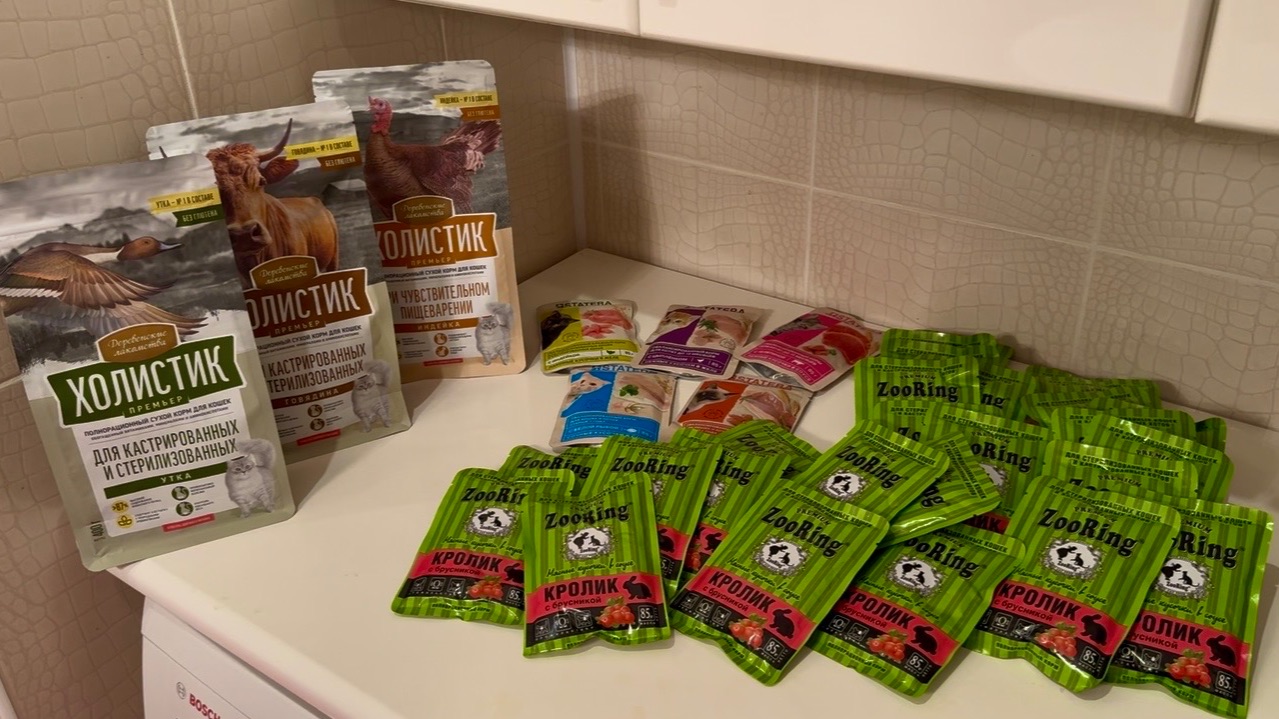 26 паучей ZooRing кролик с брусникой, 5 паучей Statera, 3 пака по 400гр сухого Холистик Деревенские лакомства в ассортименте 😺😸😻