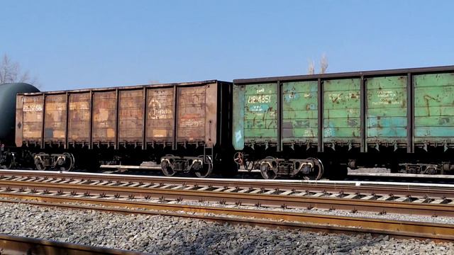 VID_20240319_141432.mp4. 2ТЭ25Км - 0303 с грузовым поездом.
