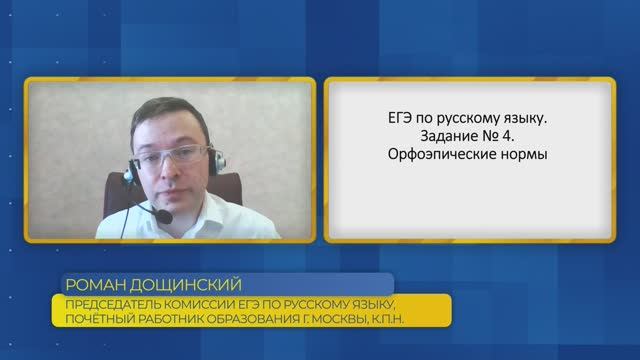 Роман Дощинский. ЕГЭ по русскому языку. Задание №4. Орфоэпические нормы. Создано при поддержке МосОбрТВ.
