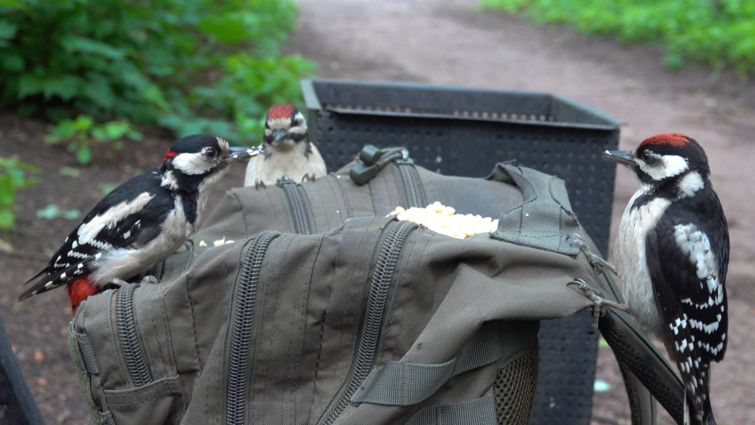 Дятел-папа и два его птенца