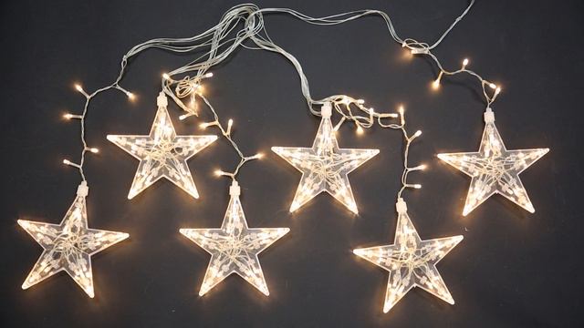 Электрогирлянда уличная (рекомендованная температура для использования на улице не ниже -10 градусов Цельсия) (можно использовать внутри помещения) Материал: пластмасса, пвх, медь, лампы Размер: длина гирлянды 2,4м, длина шнура 1,5м, диаметр звезды 17*15см в кол-ве 6шт, расстояние между звездами 40см, длина свисающего шнура снежинки 18см Цвет шнура: прозрачный Цвет: белый теплый Кол-во ламп: 120LED (в каждой звезде и на шнуре по 20LED) Кол-во режимов: без мигания Работа от сети: напряжение 220-240В, частота 50 Гц, мощность 8,7Вт IP44 Упаковка: пакет+стикер Артикул: 007847