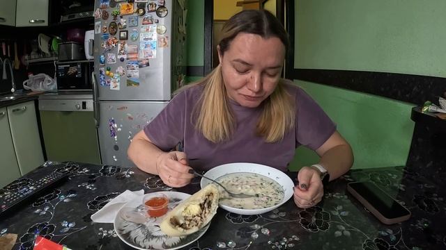 Окрошка, булочка на пару с начинкой #еда#вкусно#мукбанг