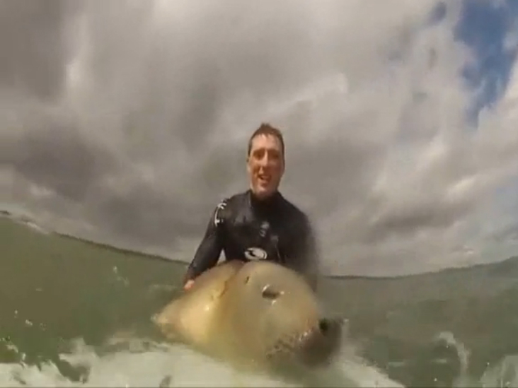 Британский сёрфер Мэттью Стэнли, ловивший волны у побережья Северного моря, невольно стал героем интернета после того, как к нему на доску забрался детёныш тюленя. Менее чем за сутки ролик посмотрели более 600 тысяч человек.
