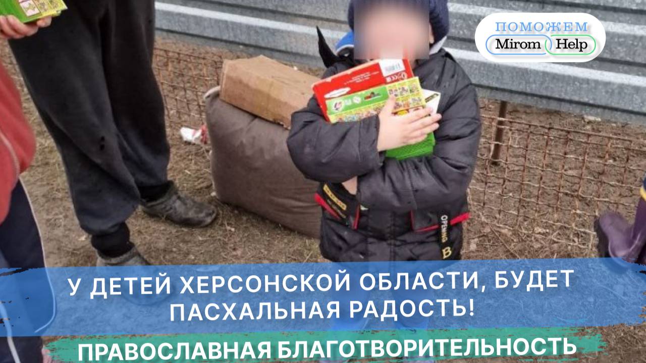 С Вашей помощью, на платформе Поможем мы смогли собрать 1 050 000 руб. и передать их БФ "Специальный гуманитарный центр Крымской митрополии, для закупки 3000 подарков к Пасхе для детей Херсонской области! Благодаря вам у деток будет пасхальная радость переданная через вашу любовь и поддержку.