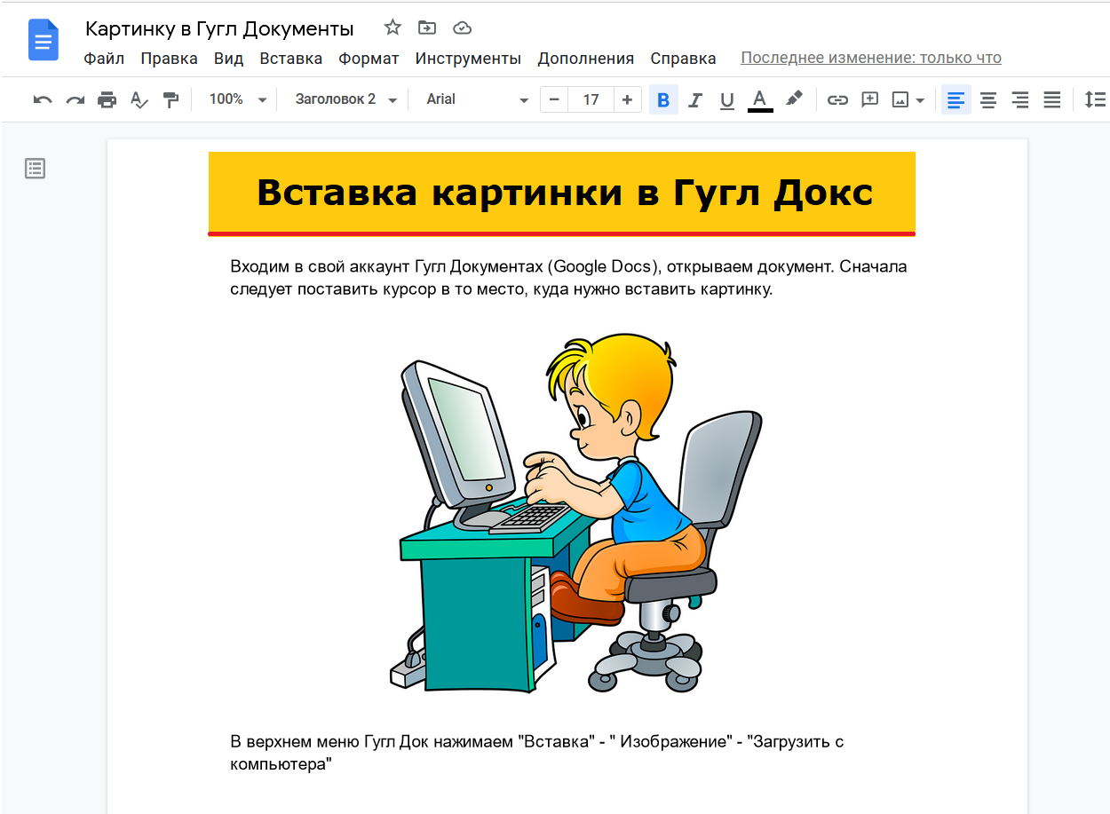 Как сделать в Гугл Документах вставку картинки с компьютера
