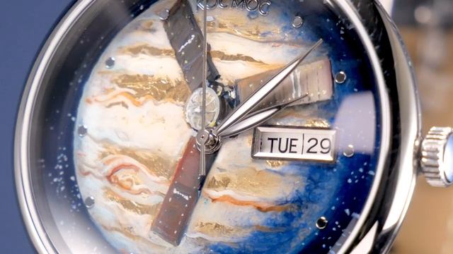 В часах установлен механизм TMI с функцией автоподзавода. Кроме часов, минут и секунд здесь предусмотрены дата и день недели. Их индикатор, выделенный накладной рамкой, вы найдете в позиции «3 часа». За движением деталей механизма можно наблюдать, стоит только перевернуть часы: задняя крышка прозрачна. Часовая и минутная стрелка покрыты люминесцентным составом, который светится в темноте. Минеральное стекло сделано по технологии, характерной для 60-70-х годов прошлого века: оно выпуклое с обеих сторон. Нити из нержавеющей стали в браслете складываются в особое плетение, названное «миланским». Оно придает браслету гибкости, сохраняя прочность. Специальная застежка позволяет легко регулировать длину браслета самостоятельно. https://cosmos-watches.ru/catalog/unikalnye-chasy/17637/