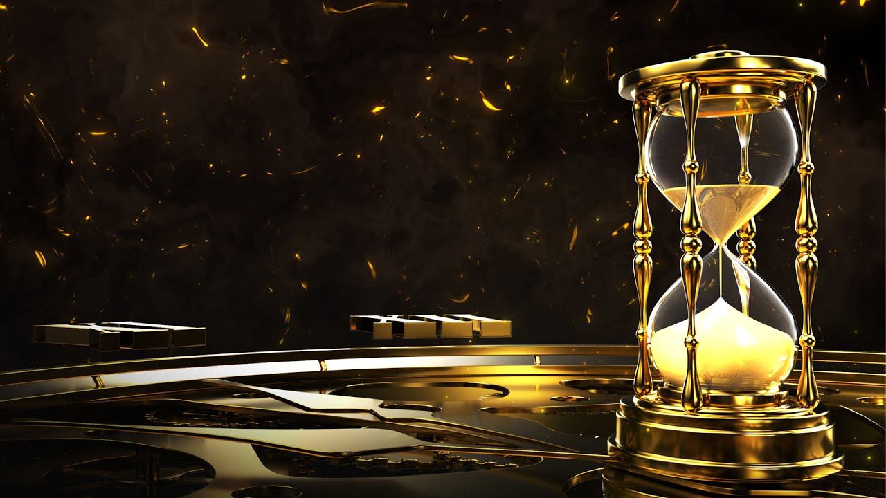 Анимированный темный фон с песочными чесами: Время золото
