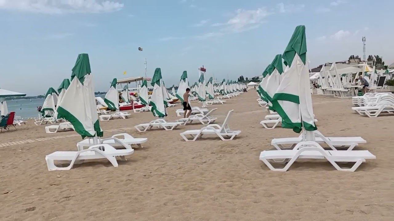 Комфортная погода в Евпатории! Тепло и облачно. Пляж Лазурный Берег. 11 августа 2022. 9.30 утра.Крым