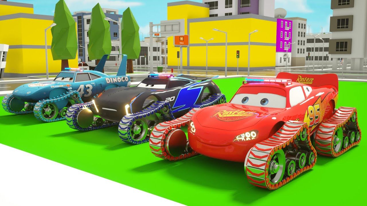 Изучаем цвета машинок Маккуин, грузовика Мак и уличных автомобилей - Сборка шин для футбольных мячей