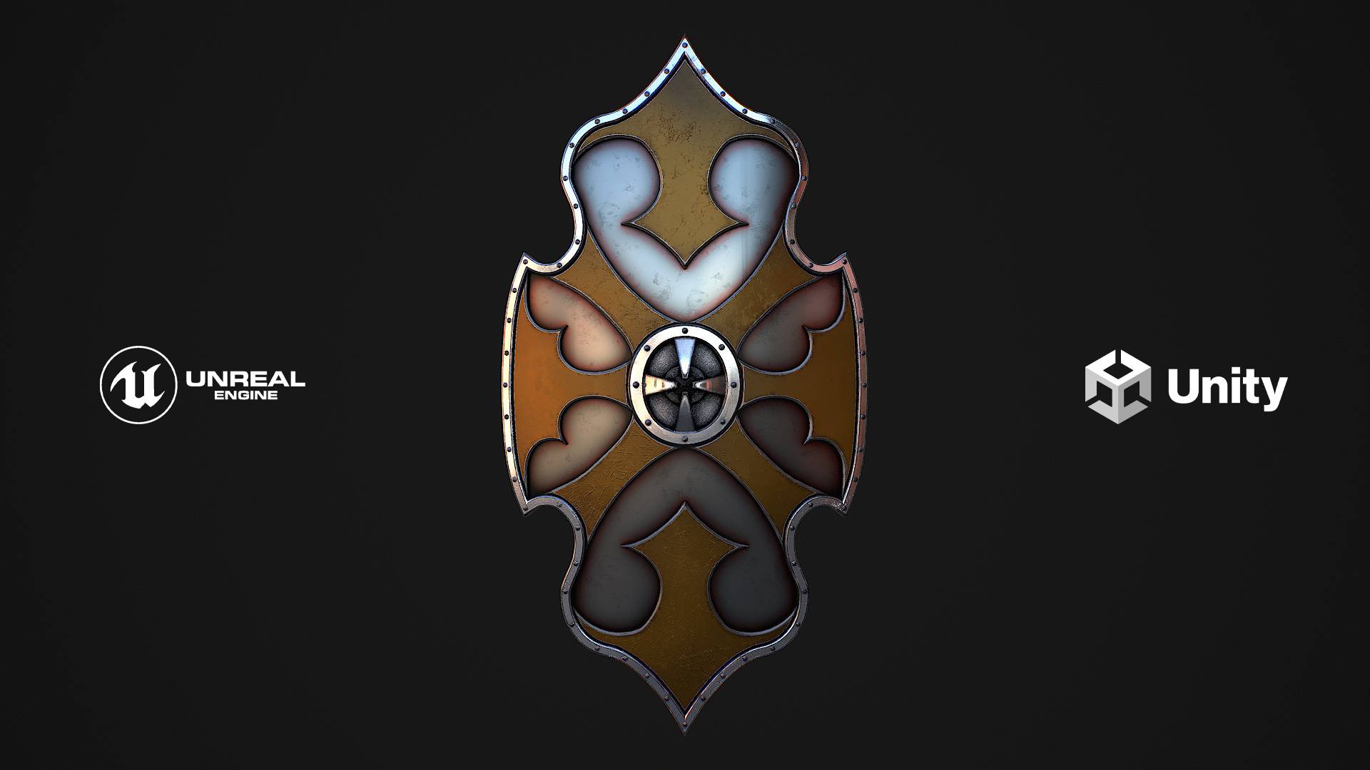 Fantasy Shield 4 polys 10322 verts 10505 tris 20644 fantasy, shield, weapon, armor, steel, metal, protection, defence, magic, ammunition, war, fight, medieval, melee, battle, Hello. This is a high definition quality polygon of a Fantasy shield 4 3D Model with PBR textures. Extremely detailed and realistic. Suitable for movie prop, architectural visualizations, advertising renders, games, VR, AR and other. The archive includes Obj and FBX, textures for the Unity: Base color, Metallic, Mixed AO, Normal_OpenGL, Roughness. And also included in the archive textures for UE: BaseColor, Normal, OcclusionRoughnessMetallic. All textures are 4k resolution. The model contains 1 object: Fantasy_shield_4. The number of materials corresponds to the number of main objects in the scene. There is 1 material in the scene. If you need it, I will make you a file for stereolithography.