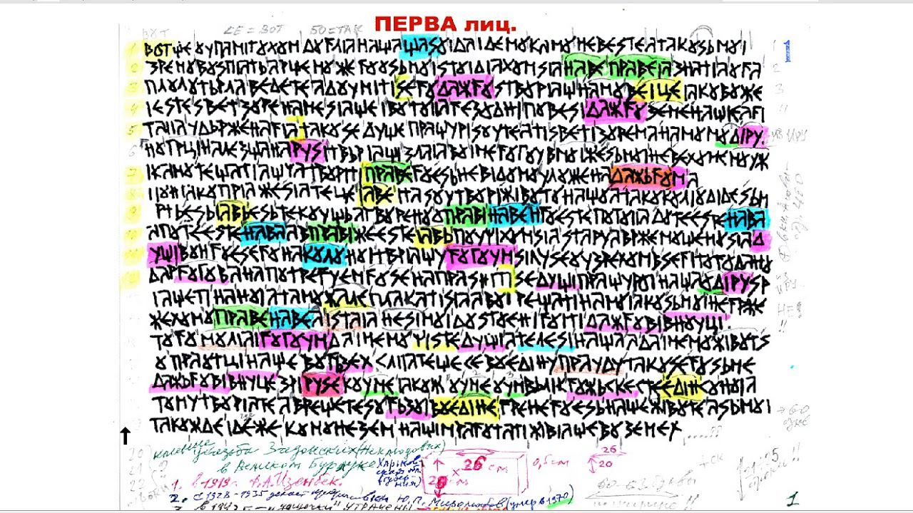 скан дощечек КНИГИ ВЕЛЕСА с ВЫДЕЛЕНИЕМ ЦВЕТАМИ важных основных СЛОВ ПОНЯТИЙ РЕЧи РОДов РУСов