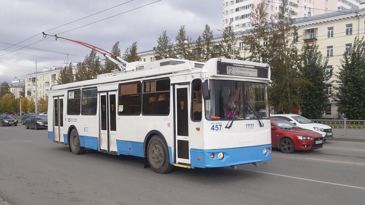 #троллейбус #транспорт #екатеринбург С октября 2002 года серийно выпускается модификация ЗиУ-682Г-016.02 с проектным названием ЗиУ-682Г-019 (ЗиУ-682Г0Л), представляющая собой дальнейшее развитие модели ЗиУ-682Г-018. Наружная обшивка бортов выполнена цельнотянутым стальным листом, обшивка передней части троллейбуса комбинированная, с применением стеклопластиковых панелей. Передний бампер также выполняется из стеклопластика. Окна пассажирского салона имеют тонированное стекло, устанавливается новое панорамное лобовое стекло. На троллейбусе выполняется повышенная антикоррозионная защита кузова, включающая применение токопроводящих грунтов фирмы «Sikkens» в нахлёсточных сварных соединениях, фосфатного защитного покрытия, а также дополнительного покрытия основания, боковин, передка и задка защитным покрытием. На троллейбус устанавливается тяговый двигатель ДК-213А производства московского завода «Динамо» мощностью 110 кВт. Система управления — реостатно-контакторная. Большая часть тягового электрооборудования вынесена на крышу троллейбуса. На крыше расположены токоприёмники, силовые резисторы, групповой контроллер, радиореакторы, автоматический выключатель ВБ-7 (существует вариант с установкой вместо ВБ-7 автоматического выключателя ручного управления АВ-8 в кабине водителя на задней стенке), статический преобразователь (ИПТ-600/28 или БП-3Г), ограничитель хода штанг. За спиной водителя расположен шкаф, внутри которого установлена электрическая панель защитных реле. В связи с этим первое по левому борту окно пассажирского салона имеет уменьшенные размеры, отсутствует пассажирское сиденье перед левой передней колёсной аркой. Внутреннее освещение пассажирского салона осуществляется люминесцентными светильниками, имеющими режимы полного, частичного и аварийного освещения. Пассажирский салон оборудован раздельными комфортабельными сиденьями. Два пассажирских места оборудованы для перевозки инвалидов с ограниченной подвижностью. Стояночная тормозная система воздействует на тормозные механизмы ведущих колёс от энергоаккумуляторов, и управляется от пневматического крана в кабине водителя. Масляный бачок гидросистемы усилителя руля снабжён сигнализатором снижения уровня масла. Троллейбус ЗиУ-682Г-016.03 на площади Минина и Пожарского в Нижнем Новгороде С целью повышения электробезопасности введены стеклопластиковые подножки, электрическая изоляция створок пассажирских дверей от кузова, внешняя электрическая изоляция штанг токоприёмников, устройство контроля изоляции УКИ, аварийный выключатель, вынесение большей части тягового комплекта электропривода из-под пола на крышу, технологические дорожки на крыше для перемещения обслуживающего персонала, задние ограничители штанг токоприёмников установлены на трёх электроизоляторах, система блокировки хода троллейбуса при открытых дверях, аварийное (запасное) освещение пассажирского помещения, система противозащемления пассажиров дверями, запасные выходы через окна салона, оборудование служебных дверей снаружи и изнутри органами управления для открывания в чрезвычайных обстоятельствах, установка на крыше быстродействующего автоматического выключателя с дистанционным управлением и др. С 2004 года также серийно выпускается троллейбус ЗиУ-682Г-016.03. Его основное отличи