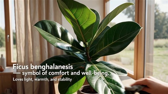 Фикус 'Одри' — элегантное деревце с крупными овальными листьями тёмно-зелёного оттенка и выраженной центральной жилкой. Часто относят к разновидности фикуса лировидного или бенджамина с узкими листьями. Неприхотлив: ценит яркий рассеянный свет, умеренный полив и защиту от сквозняков. Идеален для создания уюта в интерьере. Мои источники: https://cvetochnik-doma.ru/dekorativno-listvennye/fikus-bengalskiy https://dzen.ru/a/aRNhWOLaEVR2H8_y Поддержите автора: https://yoomoney.ru/to/41001927875995