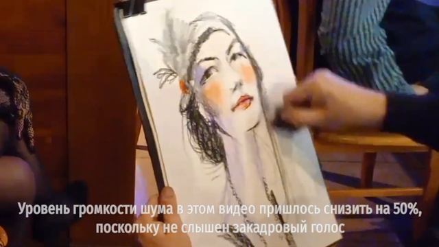 .... "А где еще быть художнику, как не на свадьбе и похоронах?" (А.Вампилов) ... Главные трудности работы художника на празднике и на корпоративах: веселые люди и шум. ... Искусство или балаган? ... Для меня это самое честное стопроцентное искусство! Здесь ты будешь рисовать только своим собственным жестом; обман на людях очень труден. Всё твоё умение, творчество на лицо и на лице. ... Самое трудное на корпоративах — это окружающий фон: экстрим, толкотня, полумрак и мелькание света; очень громкая дурная долбящая, так называемая "музыка". Все "отдыхающие" люди вынуждены орать; невозможно разговаривать в этой обстановке. И это называется "отдых"?! Это беда нашей культуры. Точнее, - бескультурье. Которое навязывается людям нашим, так называемым, МинКультом — учреждением культа, который подкладывает вражеские мины, превращая людей в толпу. Я не знаю, делается это сознательно или по дурости, но это факт: люди на развлекательных мероприятиях превращаются в ... 12:45 "Право первой ночи" у художника или кто сделает невесту счастливой на всю жизнь?! "Меня первый раз в жизни ... рисуют..." стыдливо признаются мне женщины. Какая огромная ответственность! А если это невеста?! Представляете, я могу испортить ей этот праздник и вообще впечатление на всю оставшуюся жизнь! Кстати, поэтому я в своих условиях ставлю: я не рисую юбиляров, невесту и жениха! Хотя потом об этом организаторы забывают и первых, кого ко мне подводят "на шарж" - это невесту или почтенного юбиляра. Отказать в такой ситуации уже не возможно! 17:55 Почему корявые рисунки самоучек имеют бОльший спрос на арт-рынке и вообще в народе? Все признаются: "Я ничего в искусстве не понимаю!". Это, увы, так. И тут расцветает Поле Чудес в Стране Дураков для пришлых искусствоЕдов, типа кота Базилио и лисы Алисы — наживаться на "искусстве", подсовывая халтуру. Вот почему на выставках нео-шоу-модернистов при живописи зрители ходят с недоуменными глазами "А где тут нас дурят?" Особенно опасно, когда никосысафроновы и их эпигоны выставляются в центральных залах официальных художественных музеев, там, где должно быть апробированное временем подлинное искусство, признанные историей художники, а не сомнительные "поиски" дизайнеров, с их "экспериментами" по созданию прибыльного ажиотажа вокруг своего "самовыражения". 19:30 Как отличить художника от попсового понтогона? Попросите его при вас, при всех нарисовать портрет! Но вот вопрос: на публике кто он? Не превращается ли в попс-шоумена? Вот тут и проявляется суть слова искусства — искус! Кто ты: шаржист, портретист, художник, клоун, аниматор? Или миссионер священослужитель, воин света, цвета и Бога-Творца?