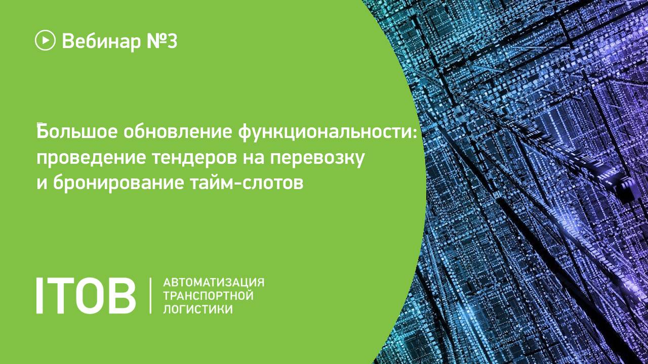 14 декабря 2023 состоялся финальный вебинар от «АЙТОБ», посвященный крупному обновлению наших программных продуктов. Этот вебинар особенно полезен для тех, кто ищет эффективные решения в области автоматизации логистики и управления транспортными потоками. В ходе вебинара мы обсудили: 1. Как автоматизировать управление очередью транспортных средств на загрузку, повышая эффективность и уменьшая время ожидания. 2. Пользу нового календаря планирования загрузок: как он обеспечивает прозрачность, прогнозируемость и упрощает управление логистическими процессами. 3. Как эффективно и выгодно проводить тендеры со сторонними перевозчиками. 4. Процесс бронирования временных окон склада с помощью новой функциональности «time slot», что делает процесс более гибким и эффективным. Практическую часть вебинара провела наш ведущий консультант-аналитик Алина Блаженко. Она продемонстрировала на практике, как: 1. Создавать задания и предрейсы в 1С:TMS. 2. Формировать и публиковать тендеры в ITOB:МЛП по различным критериям. 3. Проводить детальный анализ каждого типа тендера на грузоперевозку и выбор оптимального варианта для вашего случая. 4. Отслеживать события по тендерам в 1С:TMS. 5. Организовать процесс выбора победителя в тендере и назначения транспортных средств и водителей. 6. Проверять документ «Подтверждение заявки на ТС». 7. Забукировать слот на складе, снять букировку или перебукировать тайм-слот. 8. Осуществить отбор по статусам Рейса и по складам. 9. Установить периоды отображения Рейсов. 10. Настроить отображение дат по пройденным статусам в TMS. 11. Реализовать настройку матрицы. 12. Использовать заранее сохраненные шаблоны. 13. Происходит смена ворот, смена склада, добавление ворот. 14. Сделать ворота отображемыми или полностью закрытыми.