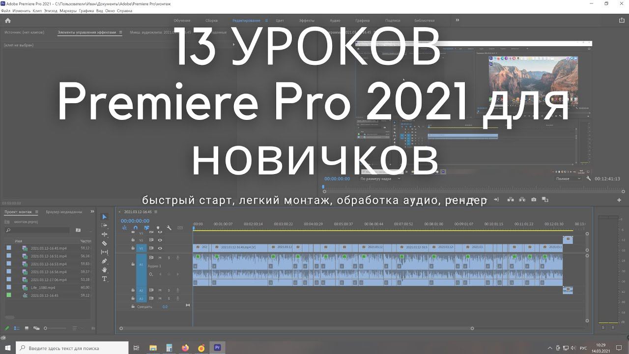 13 УРОКОВ Premiere Pro 2021 для новичков: быстрый старт, легкий монтаж, обработка аудио, рендер