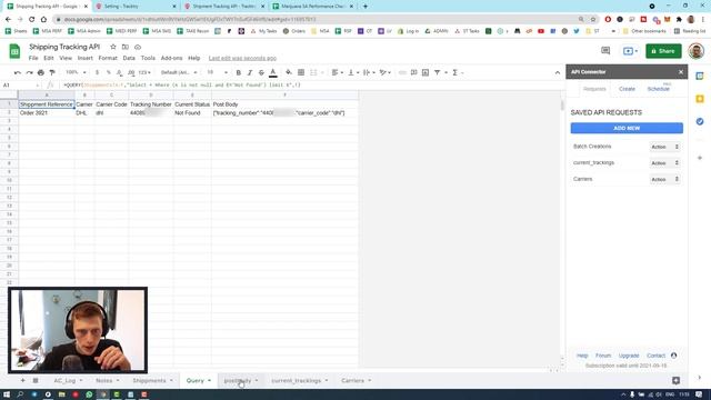 Hey there. This video is showing you how to track shipments in google sheets. There are so many possibilities for this. Hopefully, this will get you started. I use Tracktry to track any courier in google sheets as well as API connector from Mixed analytics. This works for DHL, FEDEX, UPS, and 500 more of the most popular couriers in the world. Sheet if you need it. https://docs.google.com/spreadsheets/d/1rdhlutIWn9VYkHzGW5el1EIUgFOcTWY7n5ufGF46Vf8/edi #gid=1152555730 Sign up to receive tips, early access to courses and exclusive content! https://mailchi.mp/a2dd2055fd6d/grow-your-business Favourite Apps API CONNECTOR: https://mixedanalytics.com/api-connector/?via=andrew MY HOSTING: https://www.cloudways.com/en/home.php?id=822352 DOMAINS: https://frikkadel.co.za/aff.php?aff=14 INTEGROMAT: https://www.integromat.com/?pc=andrewforte Links https://www.tracktry.com/api-index.html Post body formula ="{"""&""&"tracking_number"&""""&":"&""""&D2&""""&""&","""&""&"carrier_code"&""""&":"&""""&C2&""""&"}" Socials: https://www.instagram.com/mr.andrewforte/ https://www.linkedin.com/in/acforte/