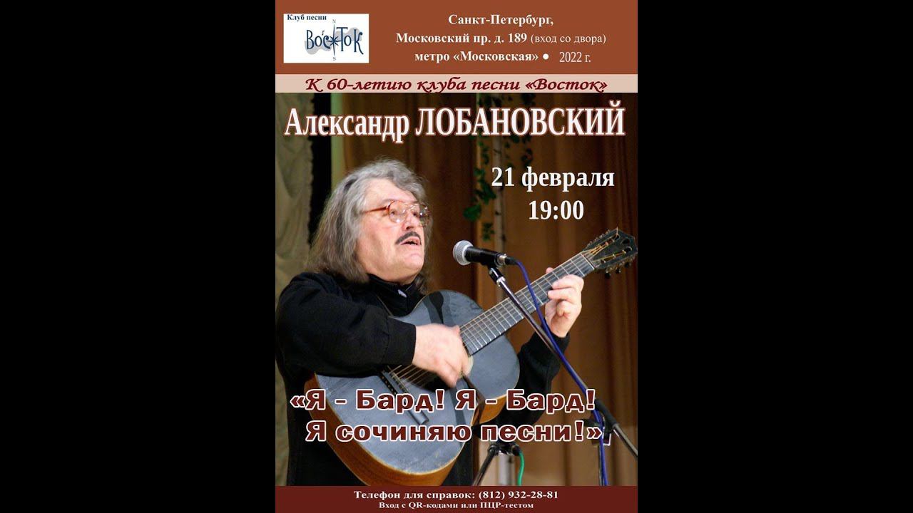 Вечер, посвящённый творчеству Александра Лобановского. Ведущие Наталья Бабенко и Елена Демьянова-Семененко. Фото- и видеоматериалы Тарьяны Браславской, Владимира Петина и из архивов Натальи Бабенко и Елены Демьяновой-Семененко. Клуб песни «Восток». 21 февраля 2022 г. Санкт-Петербург, Московский пр., д. 189. Афиша - Елена Демьянова-Семененко. Видеозапись - Людмила Фатеева. Запись звука - Геннадий Демин. Монтаж - Алла Левитан.