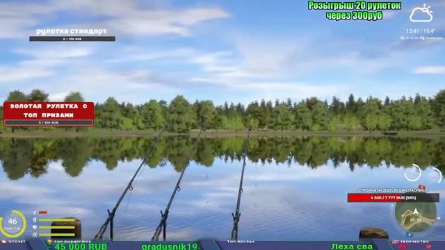 Поддержка донатом https://www.donationalerts.com/r/kalyamba11 Альтернативный донат https://new.donatepay.ru/@1032463 Если стрим лагает,смотри стрим на трово https://trovo.live/s/Kalyamba_na_Ribalke Мой ВК - https://vk.com/kalyantv НИК в игре kalyan11 НАШ ДИСКОРД СЕРВЕР https://discord.gg/mSbnTJK8TB Заказ водоема на 1 час - 500р ( весь стрим 2500р ) Модерка на канале 1200р ( каждая следующая на 100р больше) Озвучка доната на 40р,50р,100р,200р,300р,500р,1000р ✅Призы в рулетке "ЗОЛОТАЯ" ✔ ЗОЛОТО ✔ ПРЕМ ✔ КАТУШКИ РАПТОР 40, АЗИМУТ 10000, СИЛЬВЕР 80, ТАЙГА с 30 ✔ ПАЛКИ ПИЛКЕРНАЯ, ДОНКА МОРСКИЕ, ✔ РОД ПОД, СТУЛЬЯ ✅Призы в рулетке СТАНДАРТ : ✔ катушка "РАПТОР 40" ✔ катушка "АЗИМУТ 10000" ✔ катушка "ТАЙГА С30, С40," ✔ катушки 60 для медного ( ЭВИИ, НАТОРЫ, ГОЛДА, и тд) ✔ ПИЛКЕРНОЕ УДИЛИЩЕ КОРОЛЕВА ОКЕАНА ✔ Морское Донное удилище ✔ прем ( 3, 7, 30 дней) ✔ золото ( 1, 3, 5, 10, 20 ,50) ✔ билет на море ( 1, 3, 5 дней) ✔ голд наживка и др. ✅Призы в рулетке "СТАРТОВАЯ" ✔ катушка "silver80" ✔ катушка "БЕЛЫЙ КАЛИБР" ✔ катушка "Черный калибр" ✔ катушка "Протон" ✔ катушка "Нарга 6000" ✔ Набор Фидерист и спинингист ✔ Карповик Фортуна ✔ фидерные удилища ✔ прем, золото, алкашка, наживки и тд P.s Рулетка это не казино, а награда за поддержку стримера. Вечный ТОП ПОДДЕРЖКИ (11.05.2024) 1. Dimon_pokemonchik 119 784 2. Interceptor 75 508 3. Skreb79 71 261 4. une personne 68 619 5. Нарвал77 31 550