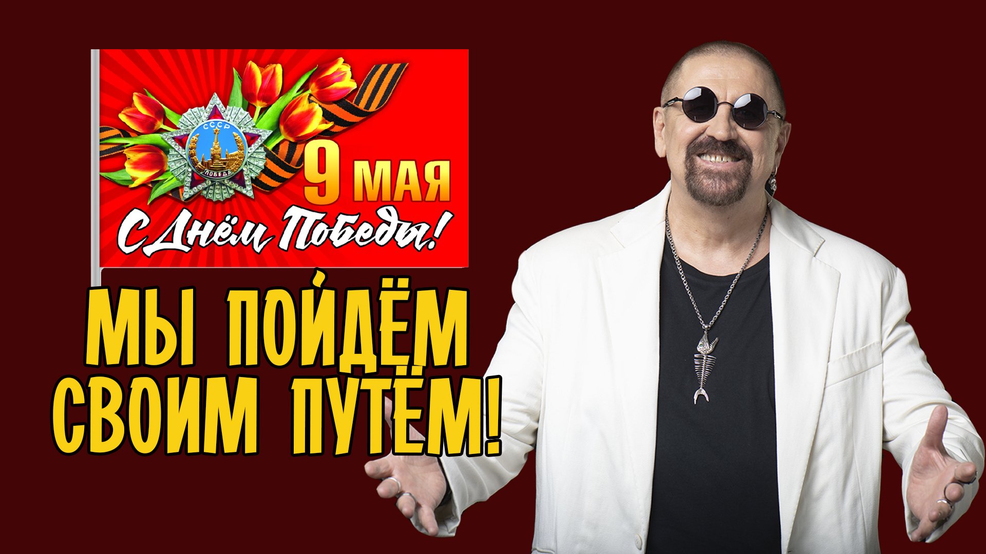 Уважаемые любители рок-музыки и вообще все патриоты нашей страны, поздравляю всех вас с нашим великим праздником - Днём Победы! И желаю всем нам новых побед в любых наших начинаниях! Желаю помнить всем, что мы дети и внуки победителей, что мы - нация победителей и что у нас особый путь. Именно об этом обо всём мы поём в своей песне, которая так и называется «Мы пойдём своим путём!»