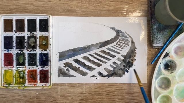 Как нарисовать железную дорогу карандашом и акварелью начинающим | Рисунок для детей