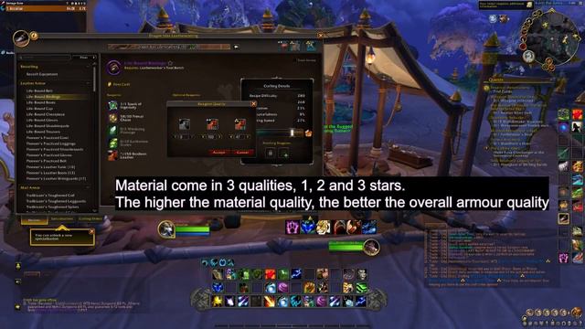 A simple and quick explanation of World of Warcraft - Dragonflight Leatherworking profession. Includes how BoP crafts work, what Skill + Inspiration + Resourcefulness mean, how to increase the item level of gear.