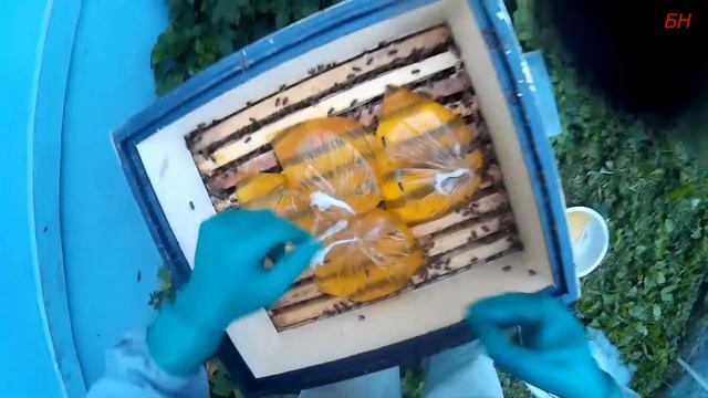 подкормка пчел сиропом в пакетах. кормим пчел в зиму.
