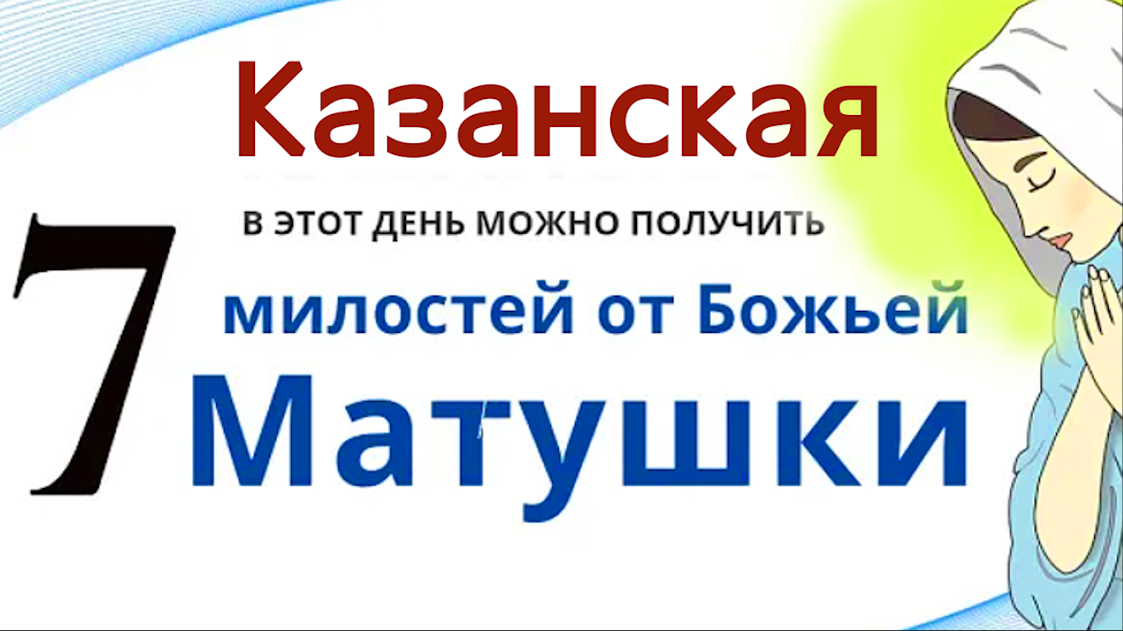 4 ноября - день Казанской Божьей атери. В этом видео я расскажу, как у Богородицы попросить достатка в дом и как получить семь милостей Божьей Матери. Я расскажу простой заговор, который на Казанскую помогает улучшить финансовое положение семьи, и сделает так, чтобы деньги не переводились. В этот день Казанская икона может подарить вам семь милостей от Богородицы. Всем хорошего просмотра. Дорогие зрители, желаю жить под покровом Божьей Матери. Молитва пред "Казанской" иконой Божьей Матери. "Как нынче чествуют Матерь Божию Казанскую, так и я с поклоном к Божьей Матери. Как полна церковь народом, так и мои закрома и карманы полны. Подай, Божья Матерь, злата и серебра на безбедный век и под свой покров. Во имя Отца и Сына и Святого Духа. Аминь."