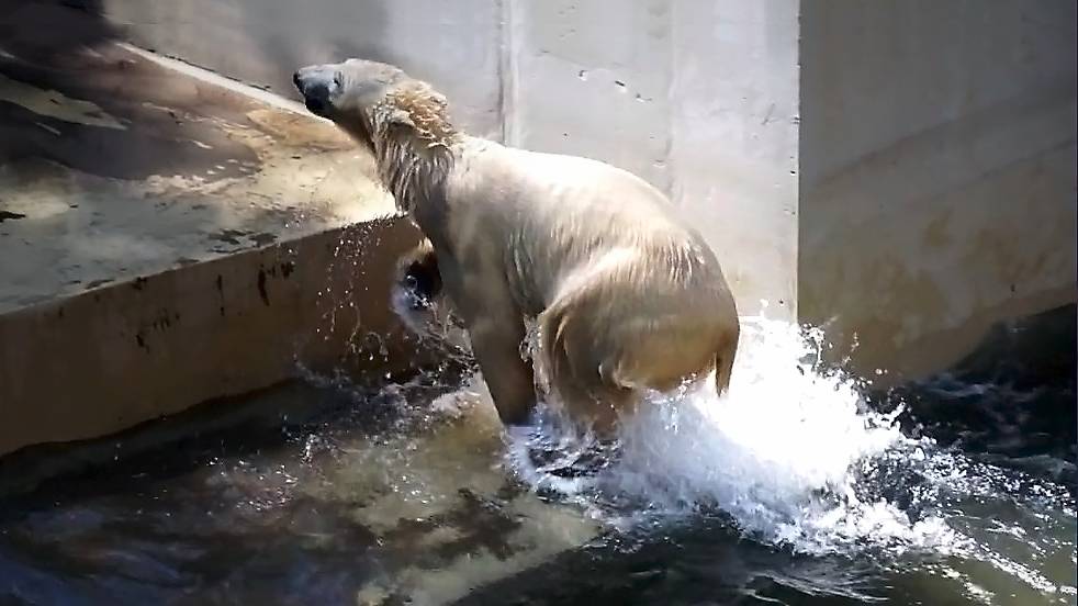 Утро у Белки и Стрелки началось необычно, но затем медвежата побежали в бассейн купаться.