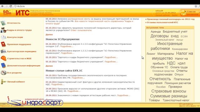 http://is1c.ru/ Начинаем работу с информационной системой 1С ИТС ПРОФ на сайте its.1c.ru Видеоуроки 1С:ИТС ПРОФ. Урок №1 "Начало работы"