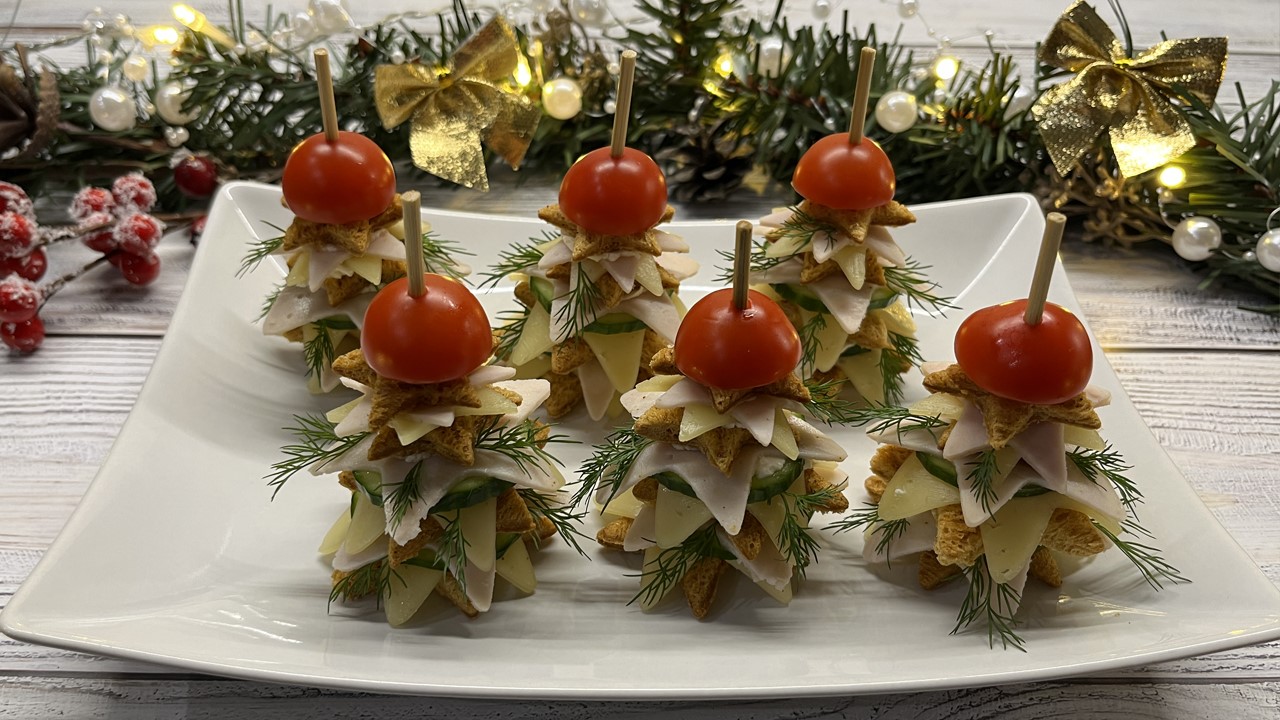 Новогоднее канапе Елочки. Эта закуска непременно украсит ваш Новогодний стол!