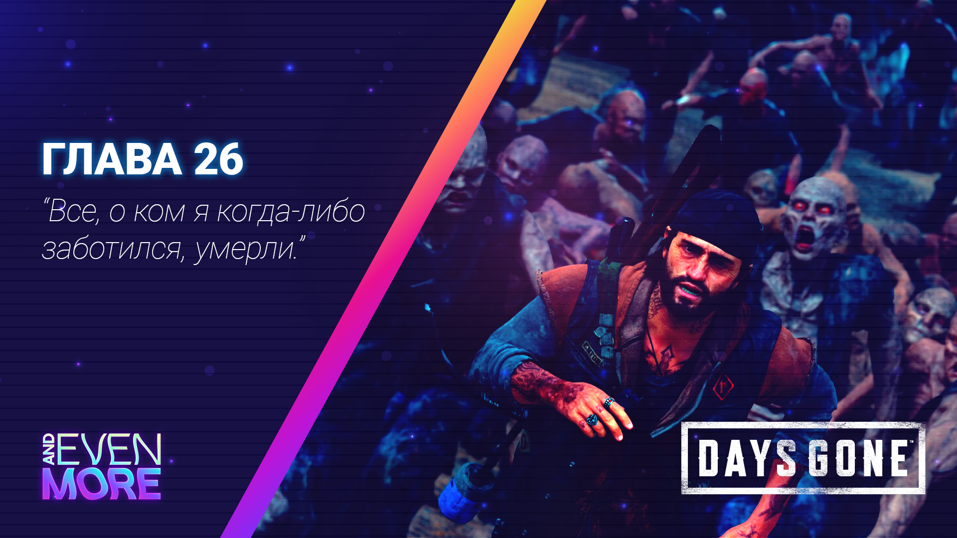 ^.^ Станьте спонсором канала: ?https://www.donationalerts.com/r/andevenmore ? Карта Сбербанка 2202 2015 7076 4296 ^.^ Youtube: https://www.youtube.com/channel/UCUbO9yjhkgFaQx6MmYpRgkw ^.^ Twitch: https://www.twitch.tv/andevenmore ^.^ Rutube:https://rutube.ru/channel/25688131/ ^.^ Discord: https:https://discord.gg/w5nSFKY5PP ^.^Плей лист Gameplay PC Days Gone Режим Выживания II Chapter: https://www.youtube.com/watch?v=JJdgW0TSur8&list=PL8HVnaUoqmpbRzqVaHwJBk36F3_qC254w Жизнь После (англ. Days Gone) — игра в жанре приключенческого боевика с элементами survival horror с открытым миром от третьего лица, разработанная американской частной компанией SIE Bend Studio и изданная видеоигровой компанией Sony Interactive Entertainment. Игра была официально анонсирована 13 июня 2016 года на выставке Electronic Entertainment Expo 2016. Выход игры во всём мире состоялся 26 апреля 2019 года эксклюзивно для игровой платформы PlayStation 4. В феврале 2021 года, глава PlayStation Джим Райан анонсировал релиз игры на ПК. Она стала доступна в Steam и Epic Games Store — 18 мая 2021 года. Действия игры разворачиваются через несколько лет после глобальной пандемии на территории Соединённых Штатов Америки. Игрок берёт на себя роль главного персонажа — байкера Дикона Сент-Джона, который пытается выжить в суровом мире, практически полностью уничтоженном из-за эпидемии, превратившей большую часть населения во «фриков». #Days Gone, #Days Gone game, #Days Gone игра, #Жизнь После, #Жизнь После game, #Жизнь После игра, #Days Gone прохождение, #Days Gone прохождение на русском, #Days Gone walkthrough, #Days Gone let's play, #Days Gone летс плей, #Days Gone геймплей,#Days Gone gameplay, #Жизнь После прохождение, #Жизнь После walkthrough, #Жизнь После let's play, #Жизнь После летс плей, #Жизнь После геймплей, #Жизнь После gameplay, #And eve more, #days gone gameplay, #days gone review, #dg, #sigma, #Gameplay PC, #Chapter