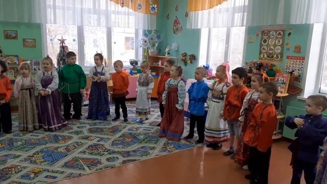 Поют дети в детском саду. Текст : Авсень-коляда, Накануне Рождества. Растворяй ворота — Подавай пирога! Не дадут пирога — Разобьем ворота! Не дадут лепешки — Разобьем окошки!