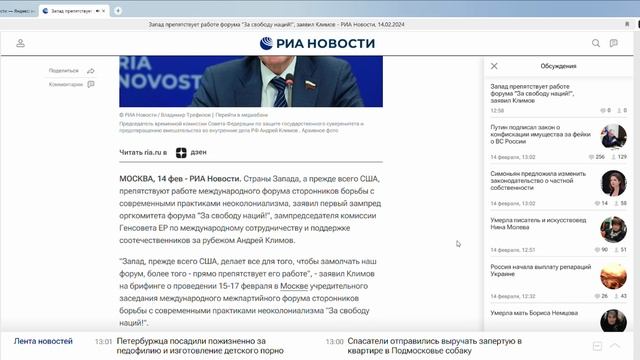Запад препятствует работе форума _За свободу наций!_, заявил Климов