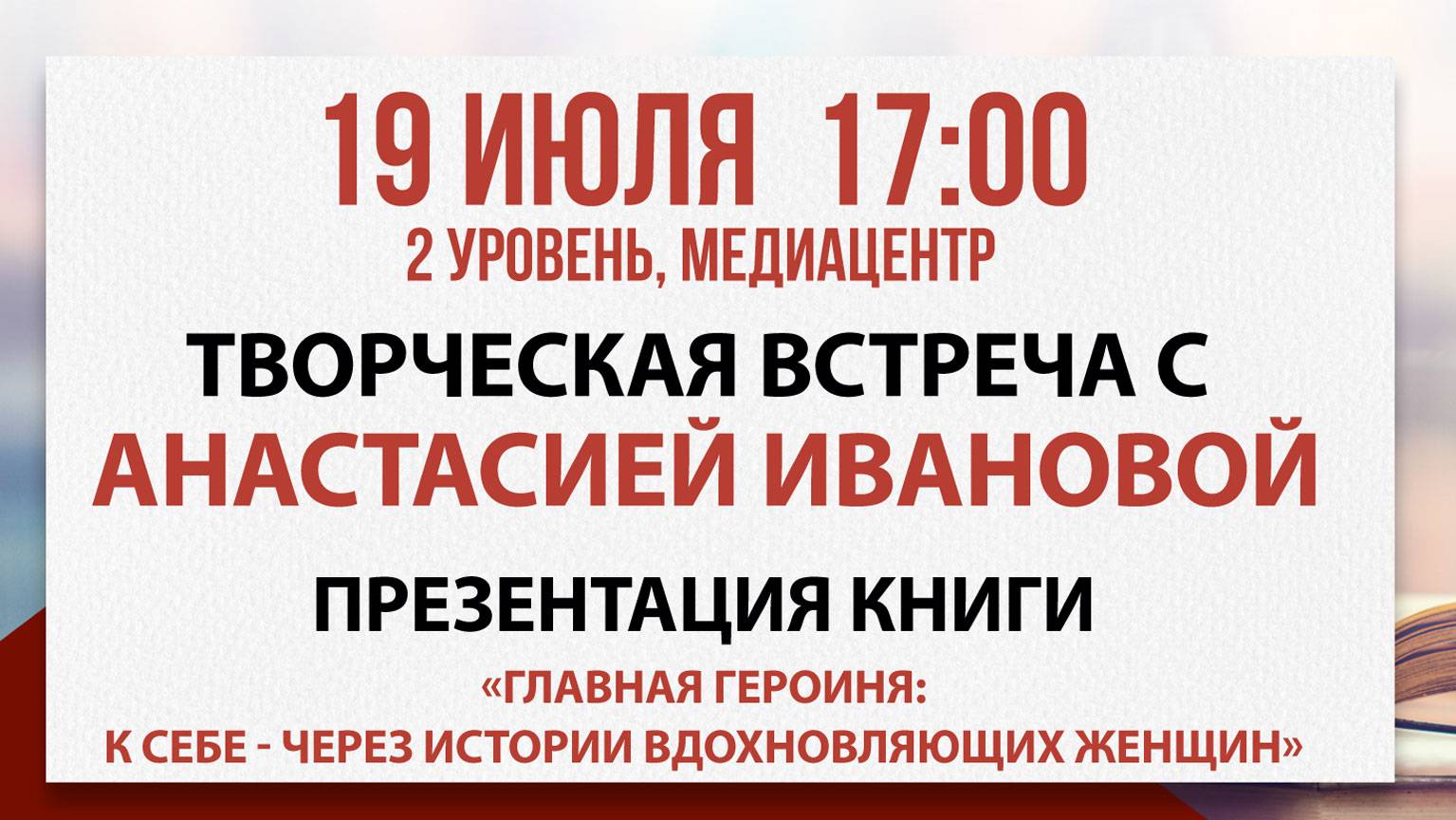 Творческая встреча с Анастасией Ивановой, 19 июля 2025