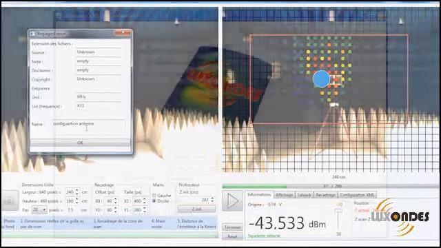 Suivi du capteur par la caméra et acquisition de la valeur mesurée placée en X, Y, Z sur une grille virtuelle. www.luxondes.com