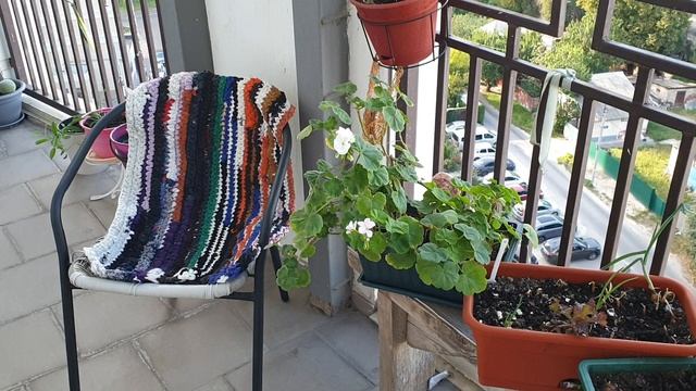 Связала накидку на кресло из старых вещей на балкон
