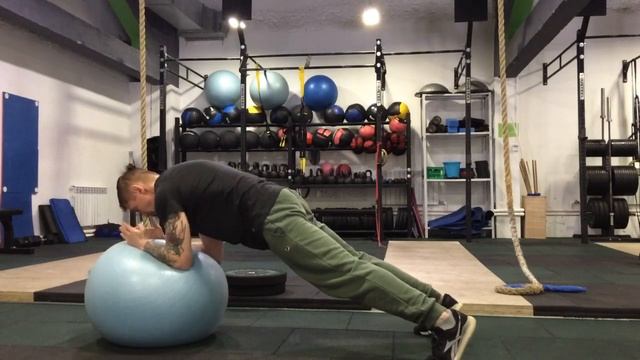 Вращения в планке на фитболе