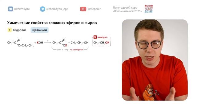 Разбираем строение сложных эфиров и жиров, изомерию, химические свойства и способы их получения. Решаем задания формата ЕГЭ и учимся решать цепочки превращений №32 с участием спиртов. Рабочая тетрадь к уроку, конспект PDF и тематические тесты на странице курса «Органика с НУЛЯ»: https://stepenin.ru/lesson/601 ✏️ Решать тесты на сайте: Задания по органической химии на сайте: https://stepenin.ru/tasks/organic 📝 Вся теория, конспекты PDF и задания по органике на странице курса «Органика с НУЛЯ»: https://vk.cc/ctyqa1 📝 Тесты и цепочки по органике в формате ЕГЭ на нашем сайте: https://stepenin.ru/tasks/organic 📽️ Органика с НУЛЯ до углубленного уровня: youtube.com/playlist?list=PLZD7dfTuRHAkyF_c8S8HzydJJYGh1bMon 💯🧠 Ждем всех на наших курсах подготовки к ЕГЭ: 👉 Курс подготовки к ЕГЭ-2025 по химии для 11 классов: https://stepenin.ru/go/cfpYZLdy 👉 Курс подготовки к ЕГЭ-2026 по химии для 10 классов: https://stepenin.ru/go/rfKv16tF 👩💻 Много тестов для подготовки к ЕГЭ-2025 по химии: 1. Задания по неорганике (больше 2000): https://stepenin.ru/tasks/common 2. Вся база заданий (больше 6000): https://stepenin.ru/tasks 📚 Рабочая тетрадь по органической химии: https://stepenin.ru/tasks/organic-book/book 📚 Книга «Тематические тесты» (500 страниц) : https://stepenin.ru/store/book/tests-bigbook 📚 Книга «40 вариантов к ЕГЭ-2025» (350 страниц): https://stepenin.ru/store/book/sbornik30 ============================= Подписывайтесь на наши социальные сети: 🐈 ВК химия: https://vk.com/chem4you 🦭 ВК биология: https://vk.com/bio4you ✈️ Химическая тележка: https://t.me/chem4you_ege ✈️ Биологическая тележка: https://t.me/bio4you Наш канал по биологии: youtube.com/@biocourse ============================= 00:00 Вступление 01:19 Краткая характеристика сложных эфиров 03:35 Структурные формулы сложных эфиров 07:33 Номенклатура сложных эфиров 13:28 Классификация сложных эфиров 15:00 Строение и номенклатура жиров 20:28 Изомерия сложных эфиров 22:40 Физические свойства сложных эфиров и жиров 25:40 Задания 1-2 32:05 [1] Кислотный гидролиз сложных эфиров 36:41 [1] Щелочной гидролиз сложных эфиров 39:29 [1] Гидролиз жиров в разных средах 43:11 Особый случай: гидролиз эфиров фенола 46:04 [2] Окисление эфиров муравьиной кислоты 47:26 [3] Реакции присоединения к эфирам НЕпредельных кислот 50:36 Задания 3-4 01:01:00 Реакция этерификации. Получение сложных эфиров 01:04:52 Получение сложных эфиров из солей карбоновых кислот 01:06:12 Сравниваем получение сложных и простых эфиров 01:07:41 Задания 5-6 01:13:11 Общаемся, говорим о важном #егэхимия #химия #егэ #органика