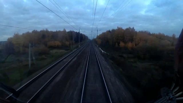 Вид из кабины поезда с электровозом ЧС7 SKODA. Ярославский вокзал - Владимир The passenger train