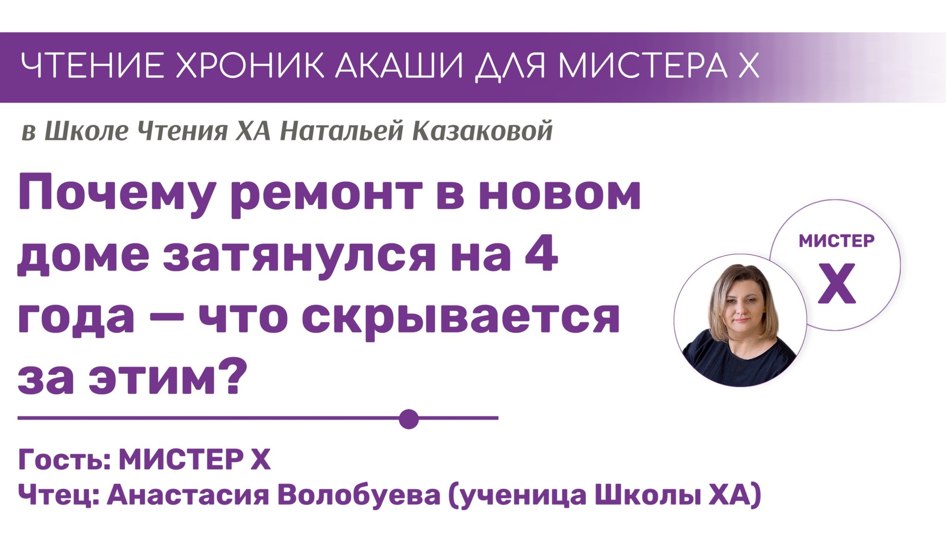 Ученики продвинутого уровня Школы Хроник Акаши Натальи Казаковой проводят Чтения Хроник Акаши для мистера Х. Стань мистером Х и получи ответ на свой вопрос. Каждую неделю своя тема. Вступай: https://t.me/+CF7Zelk1vbY4ODEy