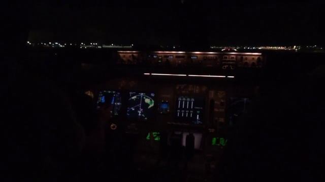 Красивое видео ночной взлет и вид из кабины пилотов большого грузового самолета