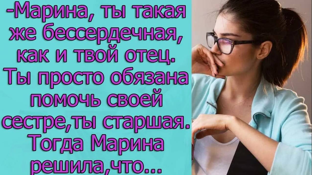- Марина, ты такая же бессердечная, как и твой отец. Ты просто обязана помочь своей сестре