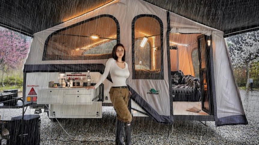 Кемпинг в дождь на люксовом кемпере. Звуки природы ASMR.