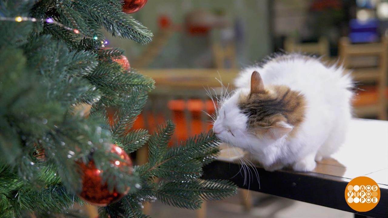 Кошка и елка, не обижайте друг друга! Доброе утро. Суббота. Фрагмент выпуска от 21.12.2024