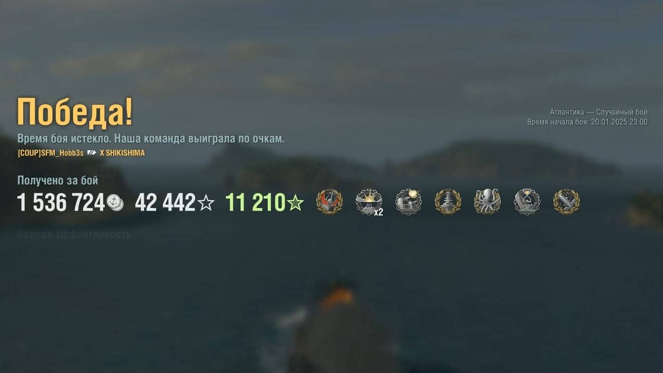 Линкор Shikishima: +251к урона 5 фрагов на карте Атлантика - World of Warships