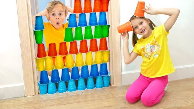 Дети играют с цветными стаканчиками и учатся делиться